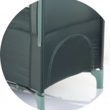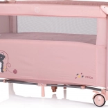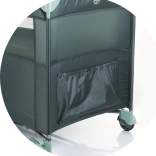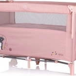 The cot is intended for newborns and children up to 15 kg. It features an attractive animal motif and a fold-down side offering two levels of use. One side has a pocket for accessories and a zippered entrance for easy access to the child.
