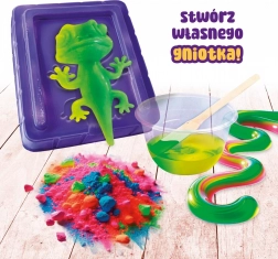 Bring creativity and fun into playtime with the Slumi Science Set - Anti-Stress Chameleon! With this kit, your child can easily and quickly create a fantastic chameleon that changes colors. The process is simple: mix magical fluids, add the color-changing powder, pour the mixture into the mold, and watch your chameleon come to life.