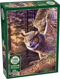 Puzzle Evening Hunter by Cobble Hill, featuring 1000 pieces, offers a unique experience thanks to its unusual piece shapes. The assembled puzzle measures approximately 48.9 x 67.6 cm.