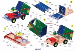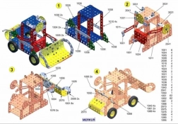 The construction set comes with an instruction booklet that guides you step-by-step to build 30 models such as a bandsaw, crane, truck, or wagon. The introductory pages offer basic advice on joining parts, using locknuts, and other specialized techniques necessary for modeling.
