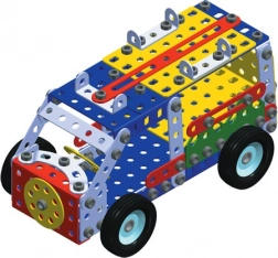 Introducing the MERKUR 3 construction set, ideal for young engineers and their parents. This classic single-layer kit includes 273 parts including strips, arcs, angles, wheels, and tires. The set also contains screws and nuts needed to assemble a wide range of models.
