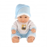 This realistic baby doll will delight any child who loves nurturing play. It features a rigid plastic body, detailed facial features, and a soft textile outfit with a cap that children can easily put on and take off.