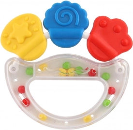 Lightweight and safe rattle and teether ideal for infants, combining sturdy plastic and soft silicone for gentle gum massage.