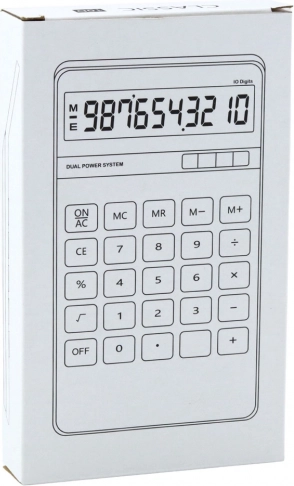 This calculator features a 10-digit readable LCD display and a wide range of functions: basic mathematical operations, percentage calculations, square root, sign change, memory (MC, MR, M+, M-), buttons ON/AC, OFF, CE, and a decimal point. The device operates in dual power mode – battery and solar power, ensuring reliable operation in various conditions.