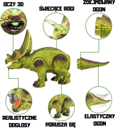 • The dinosaur moves forward and backward, imitating the walk of a real Triceratops