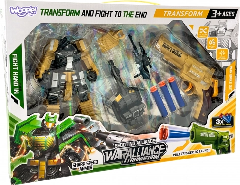 Woopie 3-in-1 transforming robot, tank and foam dart blaster – brown