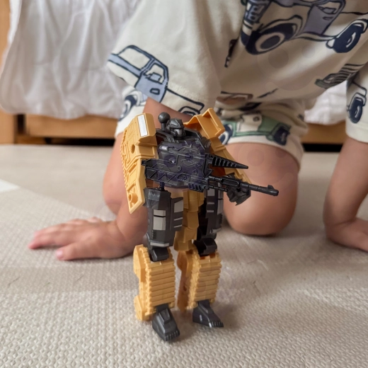 - Robot/tank transformation, foam dart shooting, articulated joints