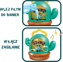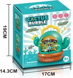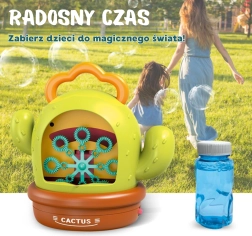 The electric cactus-shaped bubble machine turns any afternoon into a magical spectacle. Just pour in the solution, press the button, and enjoy a cascade of sparkling bubbles that delight kids and adults alike. Quality workmanship and a safe design ensure carefree play both indoors and outdoors.