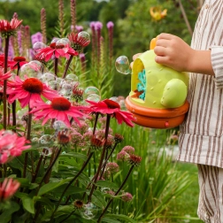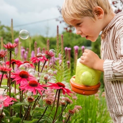 Kick-start the fun with the adorable cactus-shaped bubble machine from WOOPIE. After pouring in the solution and switching it on, it instantly produces hundreds of bubbles, enhanced with light effects and sounds. Thanks to easy controls, a sealable solution container, and a practical handle, it’s ideal for both indoor rooms and the garden for children aged 3+.