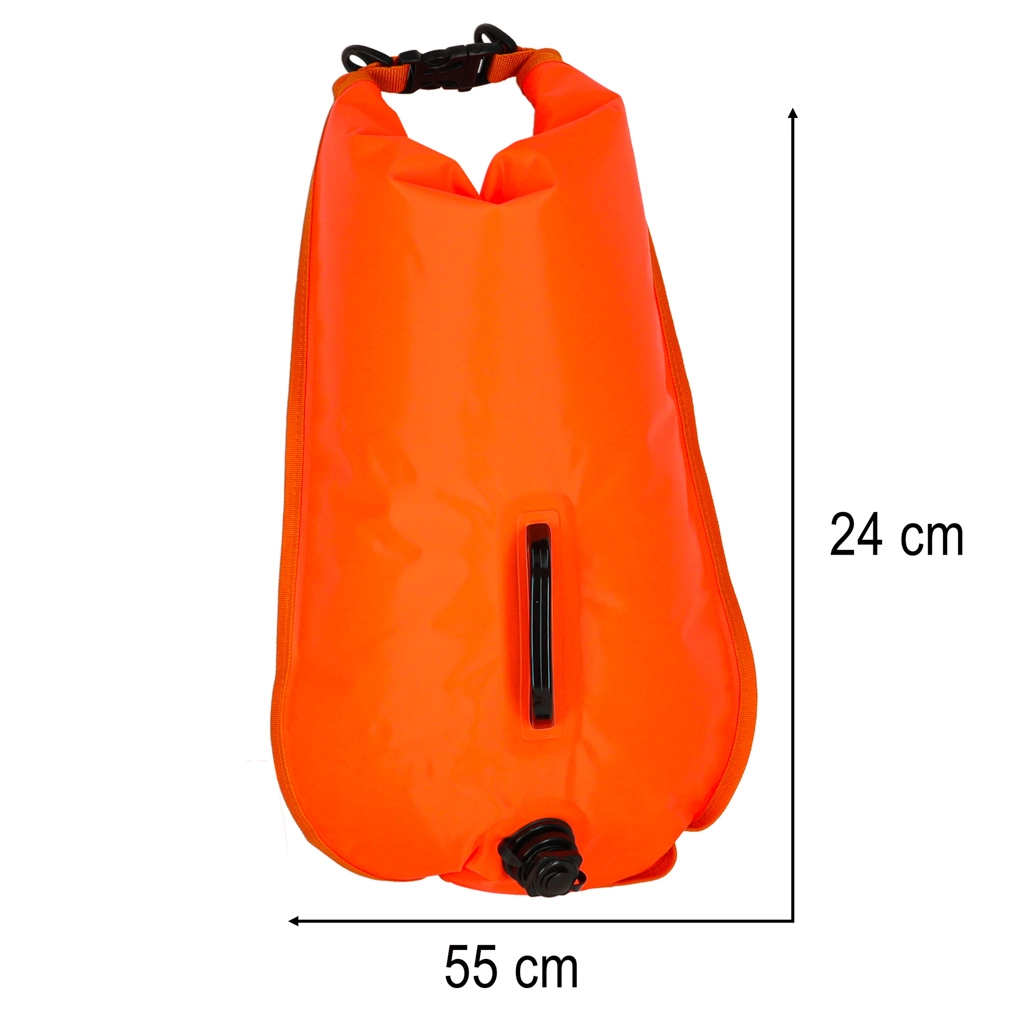 The buoy is designed to provide not only safety but also comfort. Thanks to the hermetic chamber, you can safely keep your personal items, like towels or documents, completely dry. Proper closure of the chamber ensures that no water can reach the contents.