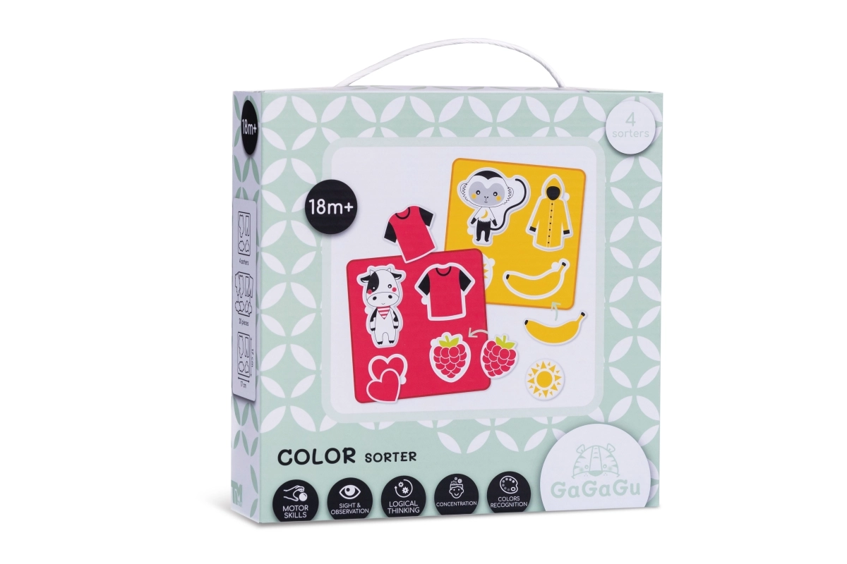 This GAGAGU Color Recognition set brings children a fun way to learn. Four puzzle boards in different colors and with varying difficulty help little ones distinguish colors, shapes, and match pieces to the correct spots. Pictures of cute animals and their favorite foods support understanding of connections and expand vocabulary.