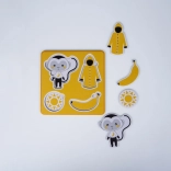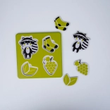 Discover the world of colors and shapes with these high-quality educational puzzles. The set includes 4 boards in four colors with varying levels of difficulty that develop manual dexterity, focus, and visual perception. Thanks to the small indentations, the pieces are easy to remove, and the colorful GAGAGU animal motifs teach children what animals most often eat. Suitable for children from 18 months.