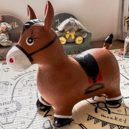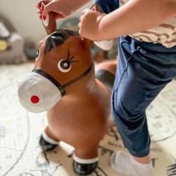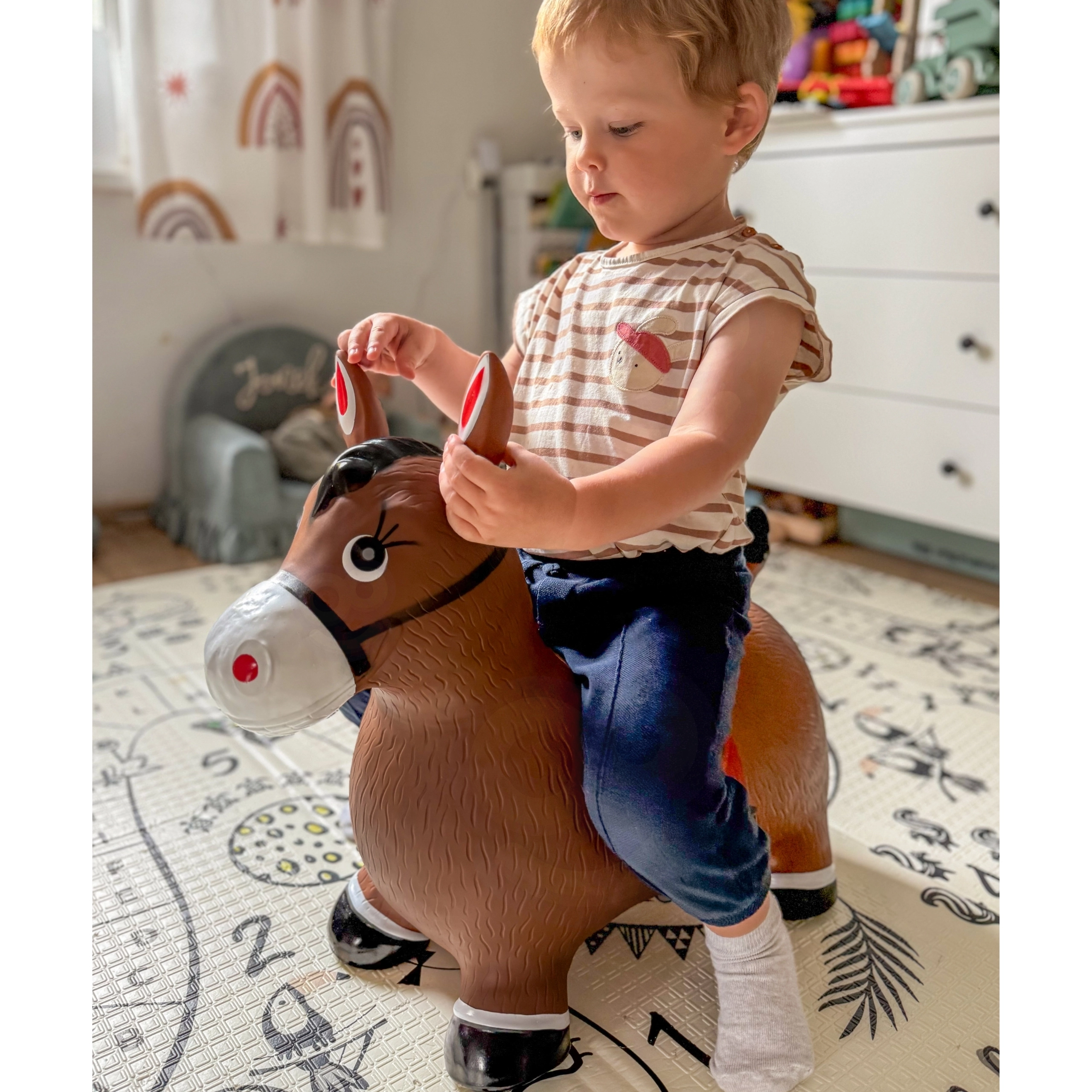 The bright design of the cute brown horse with a saddle motivates play and sparks imagination. The maximum load is 45 kg and the recommended pressure of 0.3–0.4 bar ensures the right elasticity for comfortable bouncing. The package includes a practical pump, so the fun can start right after unboxing.