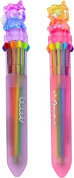 The Unicorn multicolor pen features an automatic color selection mechanism - simply press the button on the side and choose the desired color. The pen's body is adorned with a rainbow effect and a transparent unicorn decoration on top, which grabs attention and makes the pen a favorite accessory for every child.