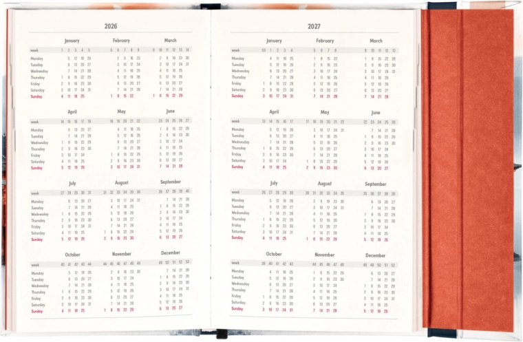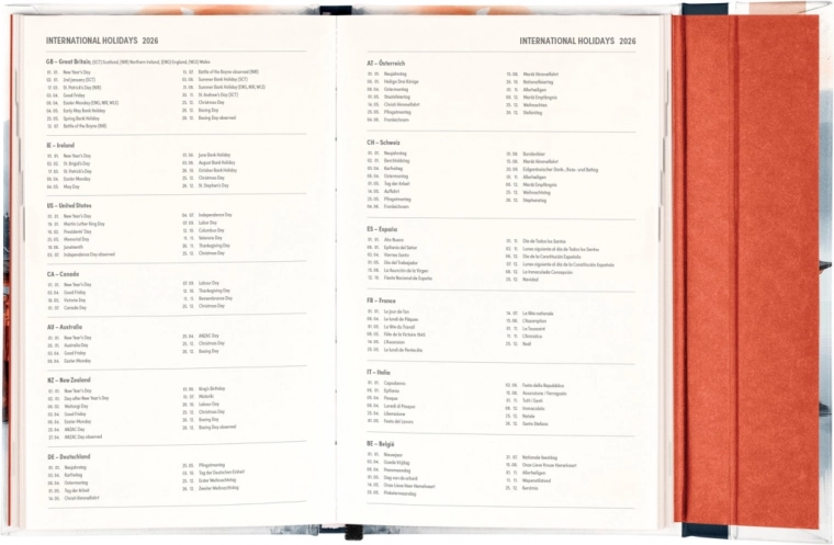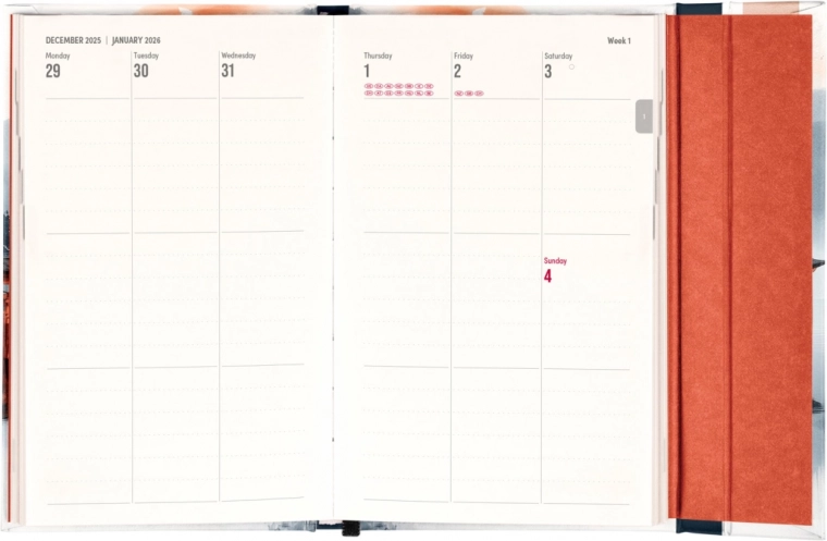Weekly diary with international holidays and magnetic closure is ideal for anyone who wants to have organized plans thanks to plenty of space for notes.