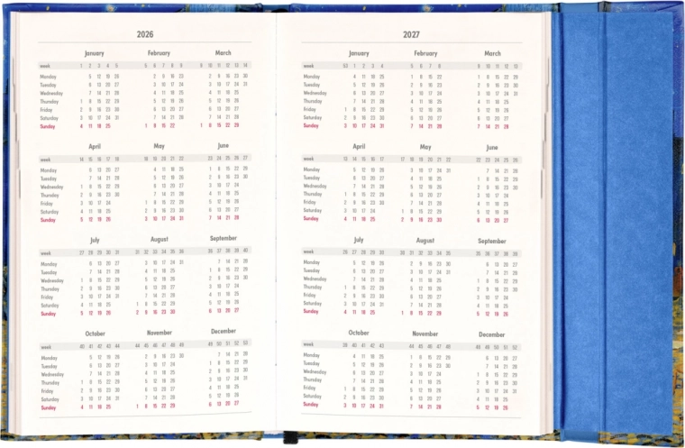 Elegant weekly diary Vincent van Gogh 2026 with magnetic closure for clear planning.