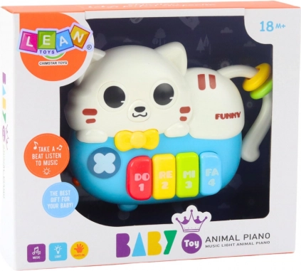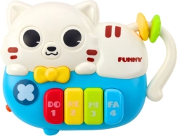 Mini piano in the shape of a cute cat is an ideal toy for the youngest children, combining educational and entertaining function. It's designed for children from 18 months and represents a great introduction to the world of sounds, rhythm, and audio-motor coordination. Colorful design, friendly appearance, and easy-to-operate buttons support active exploration of sounds and light.