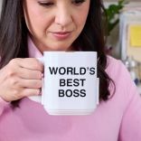 - Create fun by placing the figures and accessories into various scenes in a stylish cup labeled "World's Best Boss".