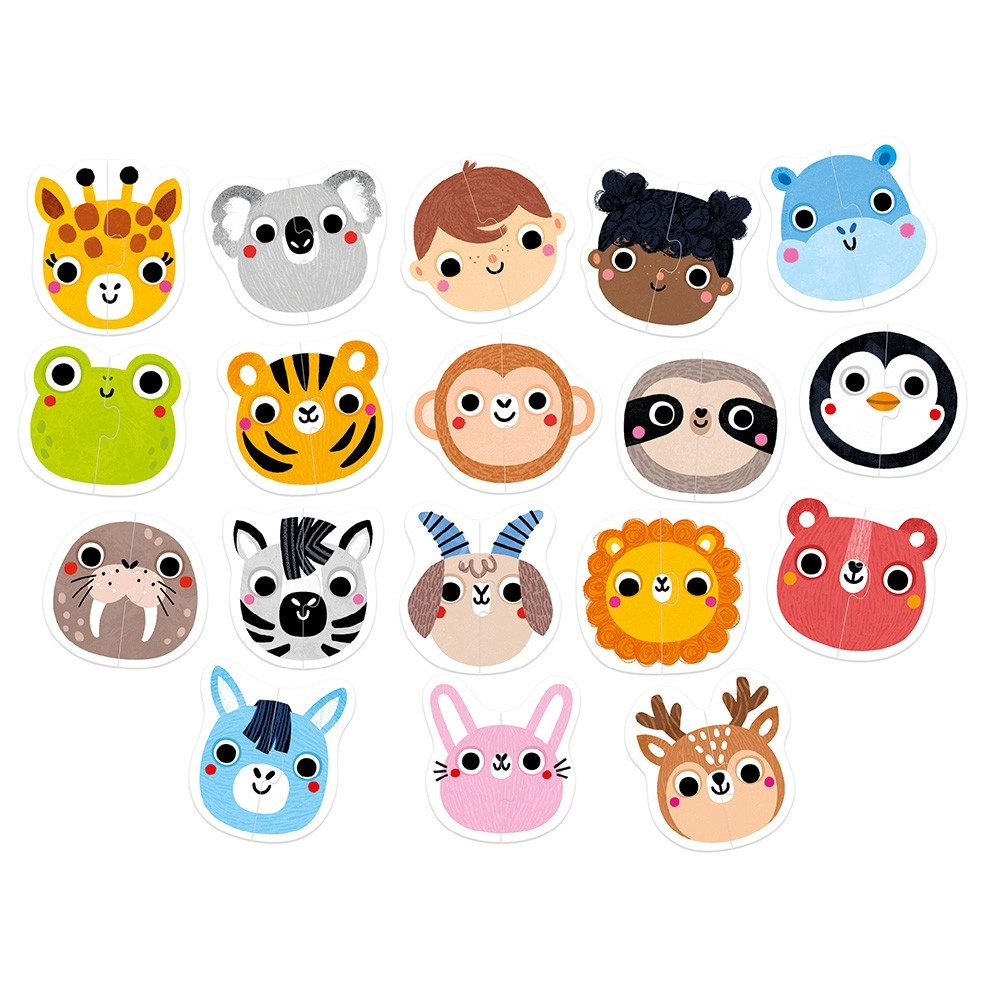What's in the box? Up to 18 two-piece puzzles with animal faces and 2 children's faces, giving your little ones plenty of options for fun play!< /p>