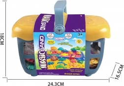 Experience a unique adventure with magical kinetic sand in a practical basket. This set is perfect for developing your children's creativity and motor skills.