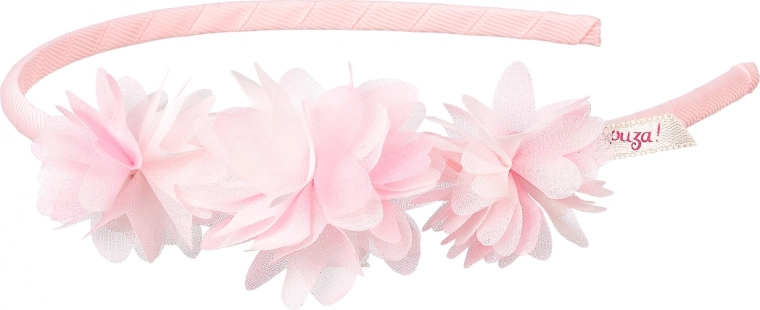 The Souza! headband is designed for little princesses who want to look stylish and feel comfortable. It is covered with a ribbon and adorned with pink tulle flowers, making it not only attractive but also very comfortable.