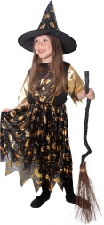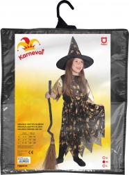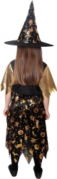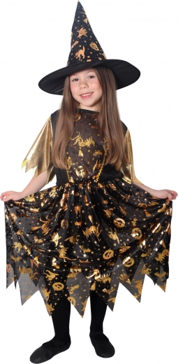 Halloween costume for little witches! The costume in black-gold color is ideal for girls aged 6-8 years. Golden Halloween motifs make these dresses irresistible. Includes a perfectly matched witch hat.