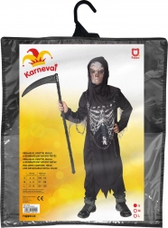 Spooky carnival costume for little ghosts! This Grim Reaper costume in size S is perfect for children aged 4-6 years. It includes a black robe with white skeleton print and a hood that creates the impression of a real grim reaper.
