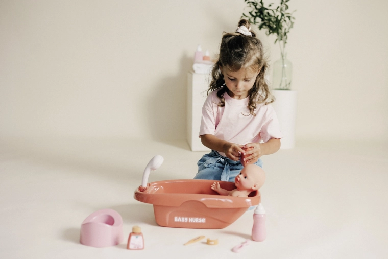 - Realistic play – bathing, feeding, and caring for a doll.