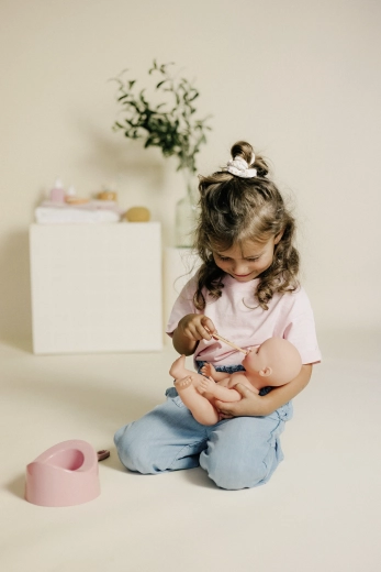 Includes a bottle, potty, thermometer, toothbrush, comb, and additional care bottles – everything for feeding, hygiene, and practicing independence.