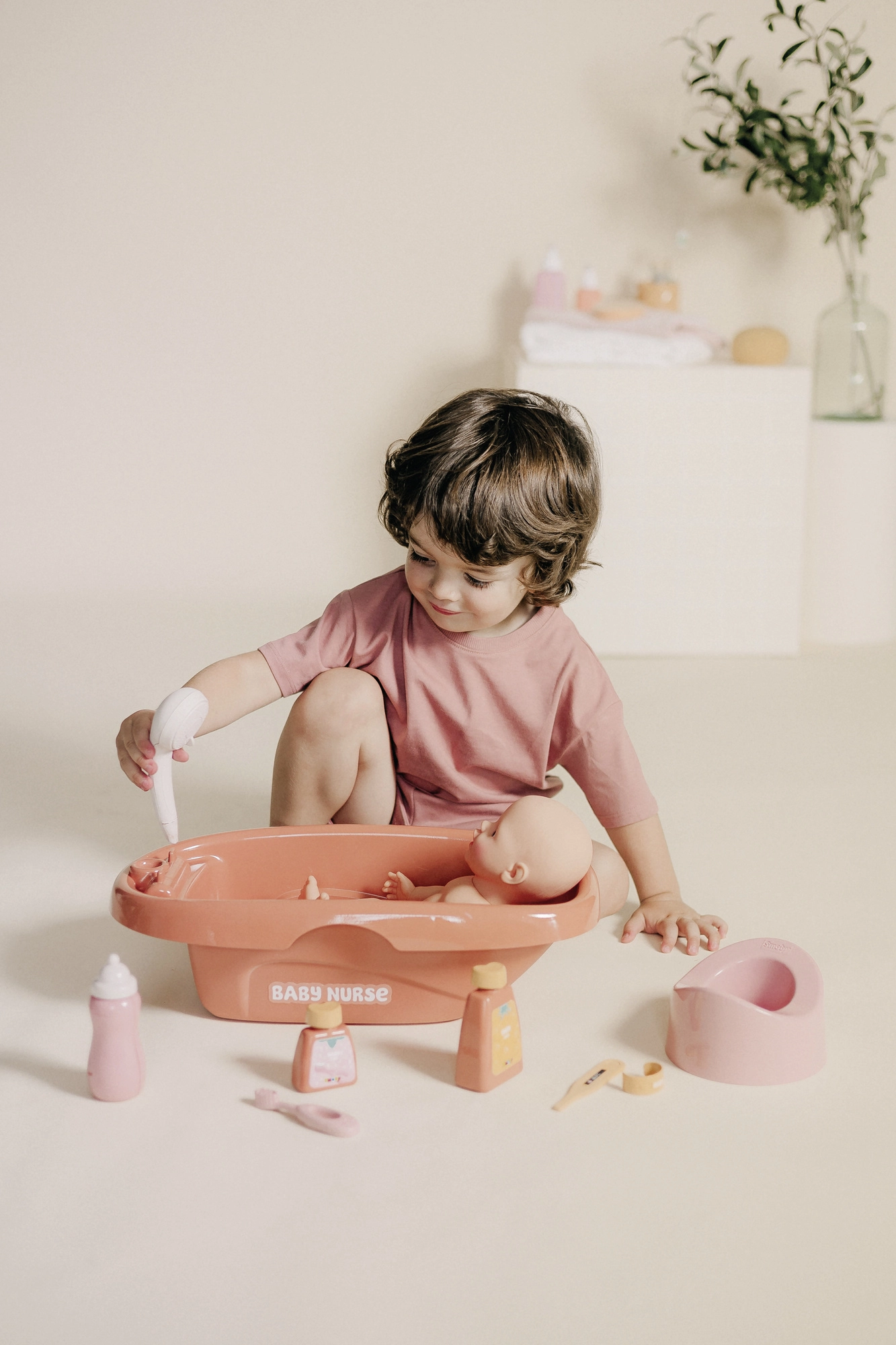 The SMOBY BABY NURSE doll bath is a great set for little caregivers. It offers a spacious tub with an integrated faucet and a removable hand shower with a mechanical rotating function, making the doll’s bath feel very realistic. After bathing, children can feed the doll with the bottle and take care of everyday hygiene.