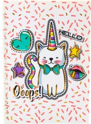 This notebook with a fairy-tale unicorn cat motif is suitable both for school and for home writing or a children's diary. The spiral binding allows you to easily open pages and write comfortably on each side. Its compact A5 format is ideal for carrying in a backpack, bag, or drawer.