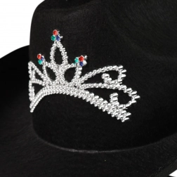 The elegant black cowboy hat is the perfect accessory for all western style lovers. It is decorated with a distinctive silver crown, which adds attractiveness to the hat. The height of the hat is 14 cm, ensuring comfortable wear. The hat is intended for adults. With this hat, you will always be the center of attention, whether at a carnival, theme party, or concert.