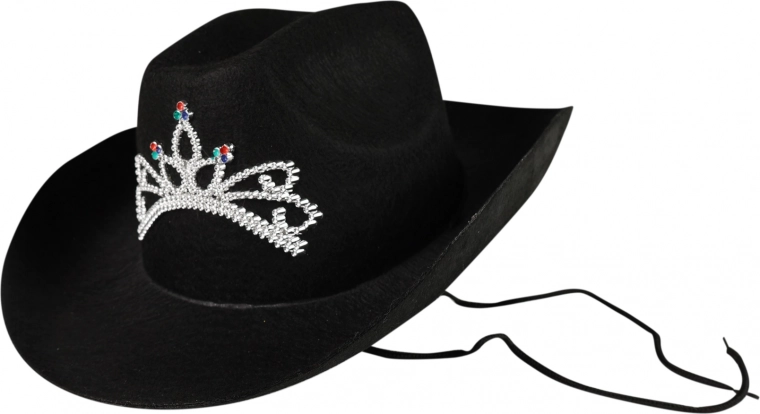 The black cowboy hat is adorned with a silver crown, ideal for every age group. A stylish accessory that makes you unmissable.