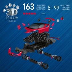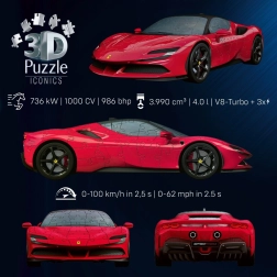 Enjoy a unique blend of puzzling and model building. This realistic 3D model of the FERRARI SF90 STRADALE in classic red consists of 108 pieces that fit together precisely thanks to EasyClick technology—no glue required. Once assembled, you get an attractive display piece with rotating wheels ready to show off.