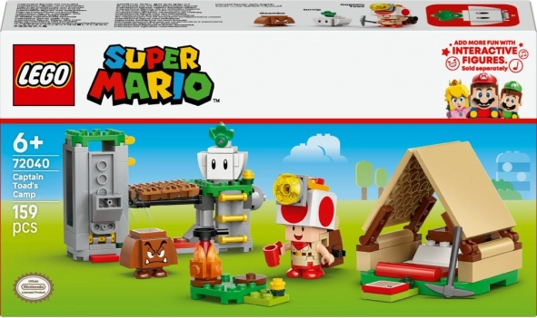 LEGO Super Mario Captain Toad – Campsite: 159 pieces, 3 figures, drop-down bridge, tent with action tags, and hidden diamonds. Interactive play with Mario/Luigi/Peach.