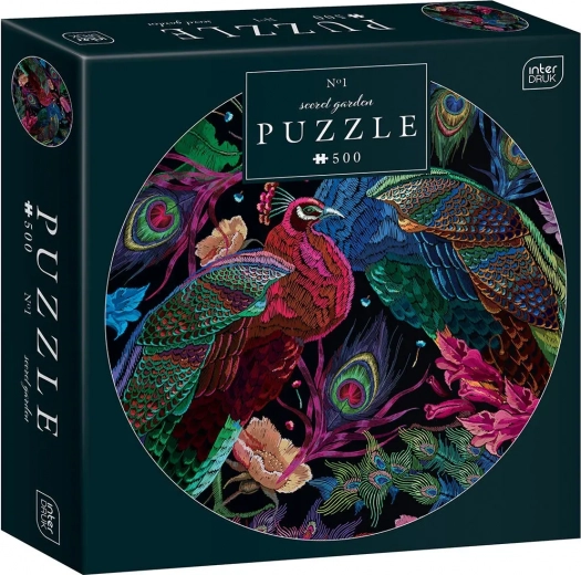 Enjoy a unique experience with the round puzzle Secret Garden: Pair of Peacocks, which contains 500 pieces. Perfect for lovers of puzzles and beautiful illustrations.