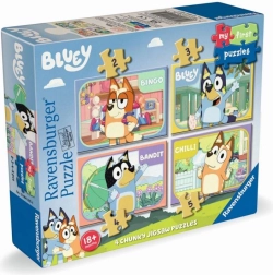 Delight your children with this creative set My First Bluey Puzzle by Ravenburger. Assembling puzzles develops logical thinking and fine motor skills. This set, designed for the youngest, contains different piece count variations, allowing gradual increase in assembly complexity: