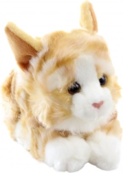 Choose this beautiful lying plush cat, featuring natural colors and a realistic appearance. Perfect for children of all ages, including newborns. Its 20 cm size easily fits in the arms, in a crib, or as decoration on a shelf.