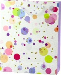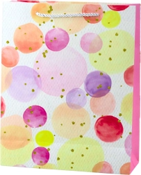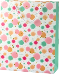 This gift bag captures attention with its original design and distinctive character, giving your gift a unique appearance. The gentle pastel and neon dots combined with golden details create a subtle and elegant look.