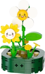 Discover a building set that combines a fun element with a decorative function. The set depicts cheerful flowers with smiles, perfect as a gift or decoration for a desk, shelf, or kids' corner.