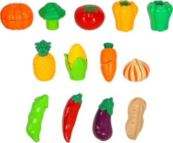 - Hook-and-loop fruit and vegetables (13 pcs): peas in a pod, green pepper, yellow pepper, chili pepper, onion, broccoli, corn, tomato, pineapple, pumpkin, eggplant, beans, carrot.