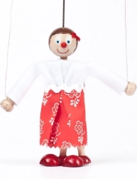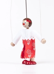 Discover the charm of traditional puppetry with the Maruška character. This handmade wooden puppet is crafted in a sheltered workshop and stands out for its meticulous workmanship. With control strings, you can easily move her arms and bring every scene to life.