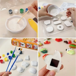 - Complete kit: molds, plaster, paints, brushes, and accessories including instructions.