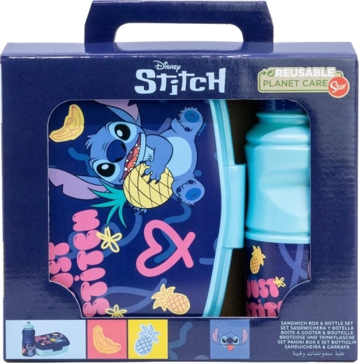 Kids 2-in-1 Lunch Set STITCH: 380 ml bottle and snack box made from durable material. Ideal for school and trips. Lightweight, practical, and easy to maintain.