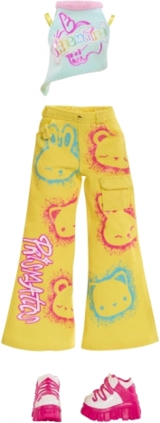 Bold yellow pants, a pastel top, and pink sneakers create a coordinated outfit you can mix and restyle to match your mood.