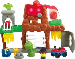 The volcano with light and sound effects draws kids into the action and supports sensory perception and imaginative play.