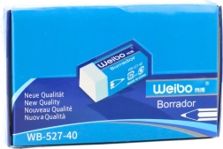The practical white WEIBO eraser is ideal for school and office. Made from a soft synthetic material, it effectively removes graphite from paper without smudging and without damaging the surface. It is latex-free, has rounded edges, and features compact dimensions of 3.5 × 1.5 × 1 cm for comfortable everyday use.