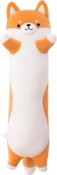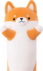 A cute elongated plush Shiba dog will delight both children and adults. Made from soft, pleasant plush, it serves as a cozy cuddle toy, a decorative pillow, and a back support bolster. Safe, non-toxic materials and a fluffy filling ensure comfort, shape retention, and long-lasting durability.