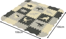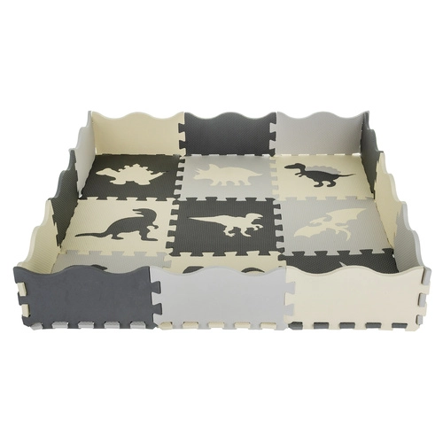A soft and safe foam mat made of puzzle pieces creates a cozy play area for kids. Thanks to the thick, cushioned layer, it protects against cold floors and falls, the waterproof surface is easy to clean, and the precisely fitting pieces stay securely together. Colorful dinosaur motifs support the development of creativity, coordination, and learning shapes and colors.