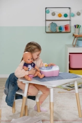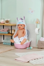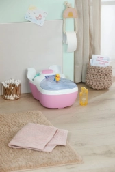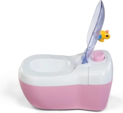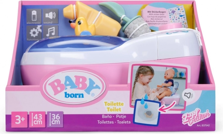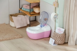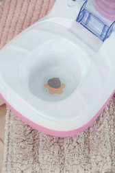 The BABY born interactive toilet turns everyday doll care into a fun ritual. As soon as the doll sits on the seat, realistic splashing sounds play; if it stays seated longer, a funny melody starts, followed by a flushing sound. All this motivates children to practice hygiene habits through play.